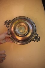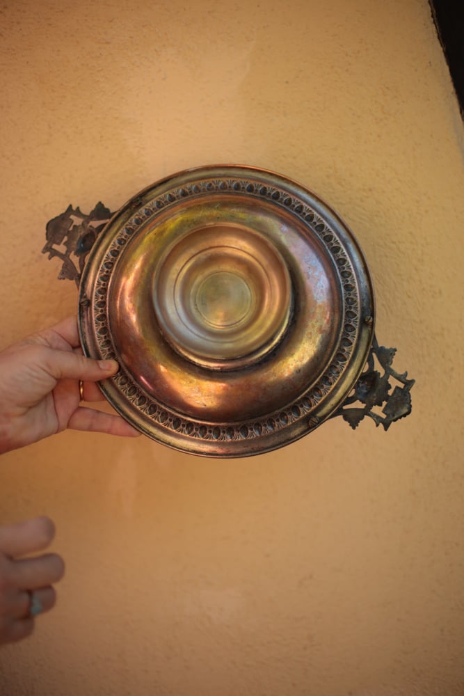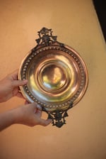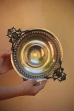 Dekorative Schale, mit Fuss und Griffen, Metall