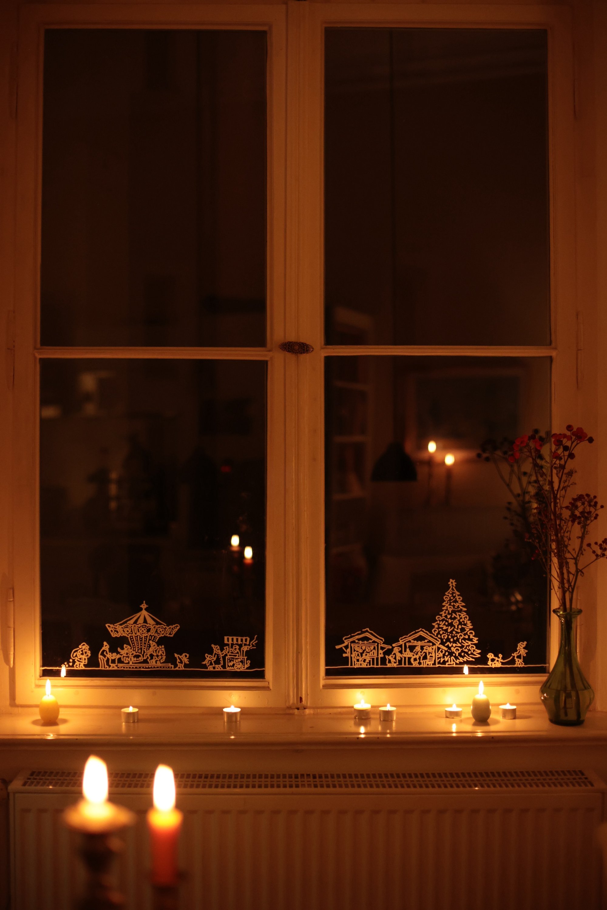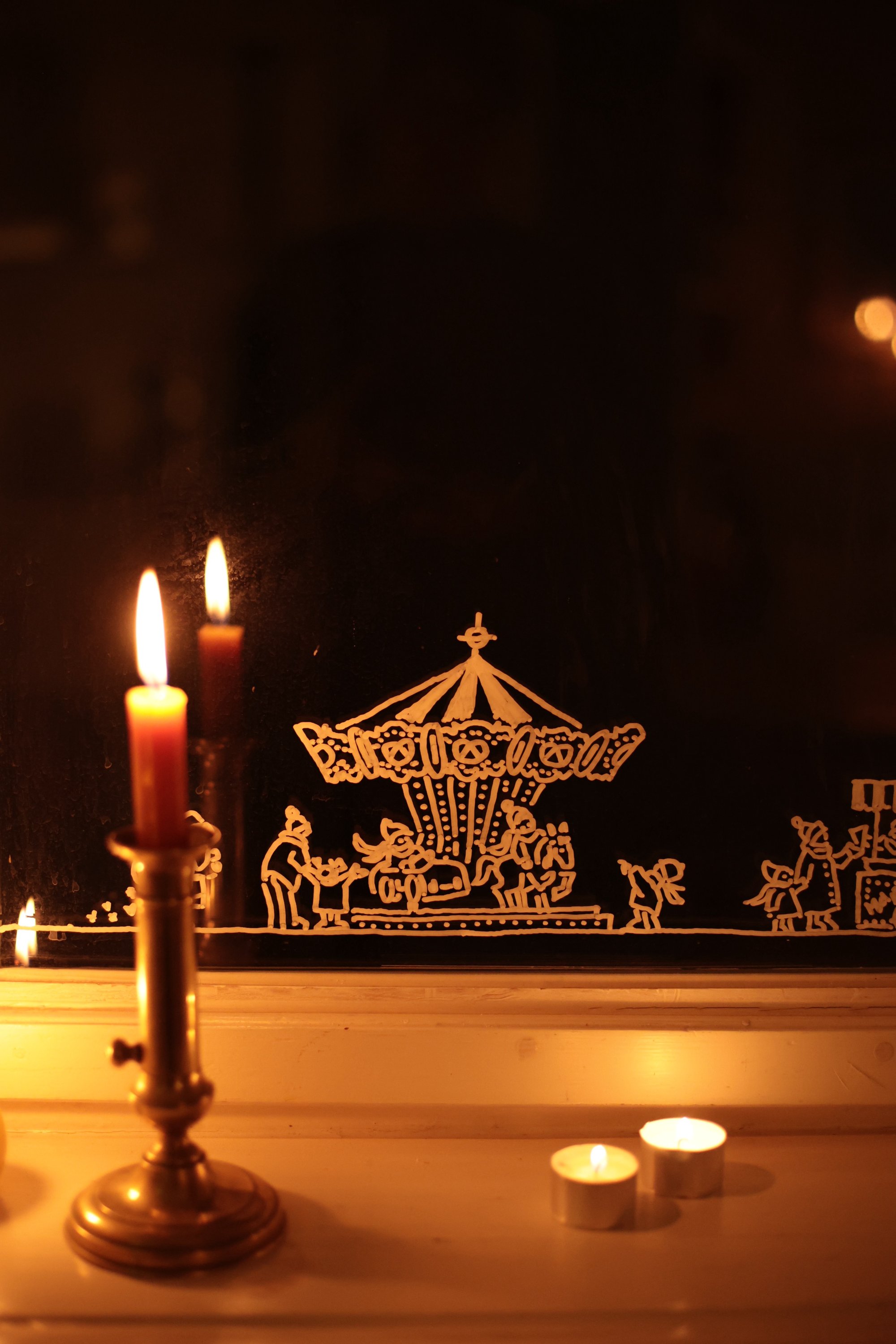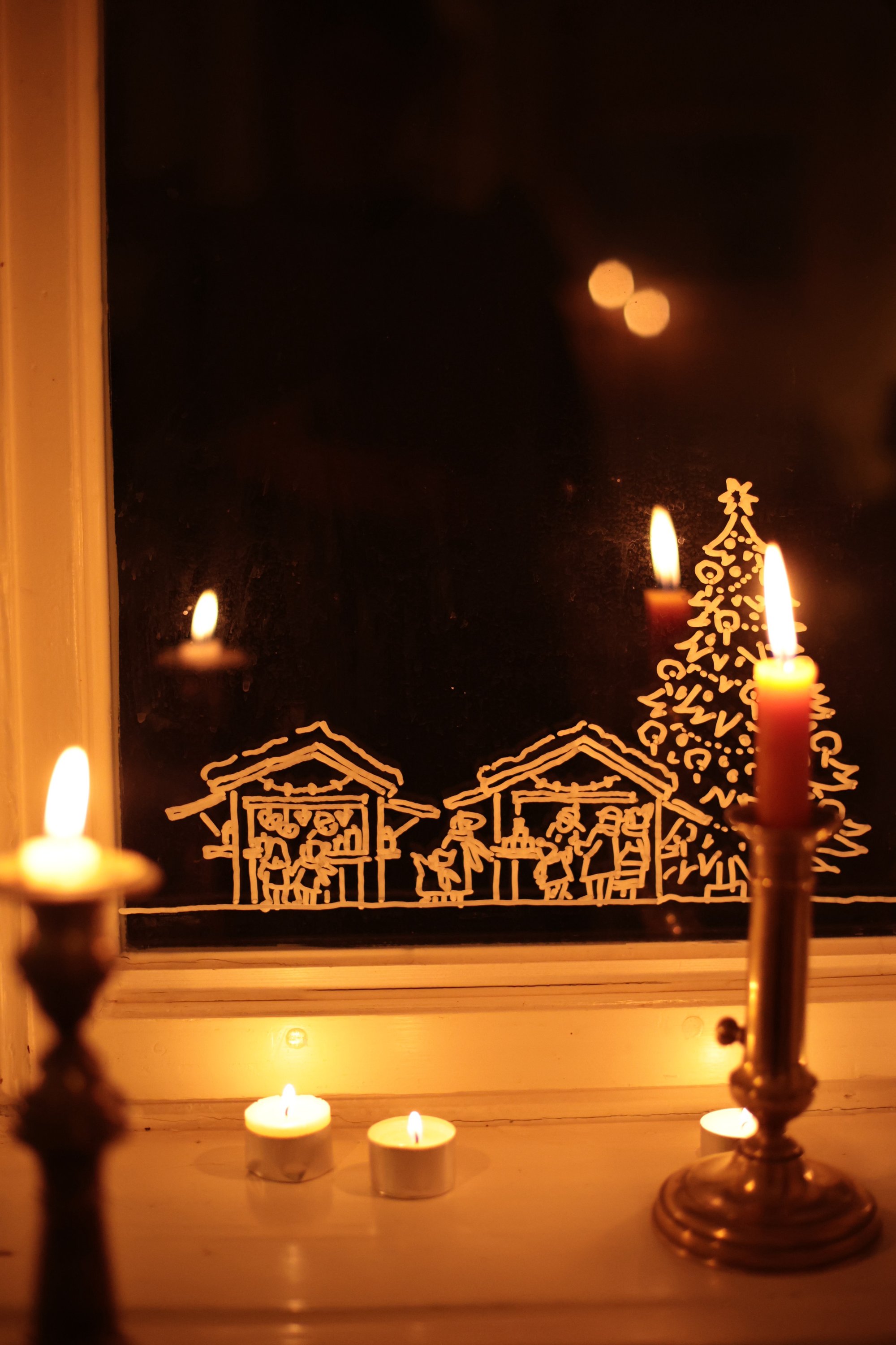 Zum auf die Fensterscheiben malen. Mit Kreidestift.