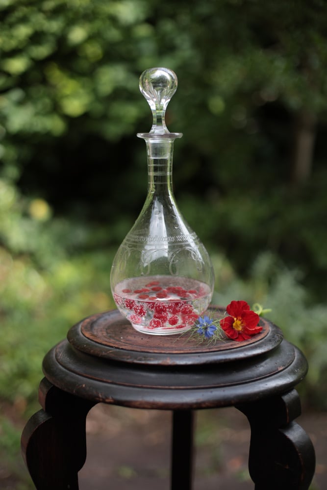 Glaskaraffe, wunderschön geschliffen, mit Stöpsel