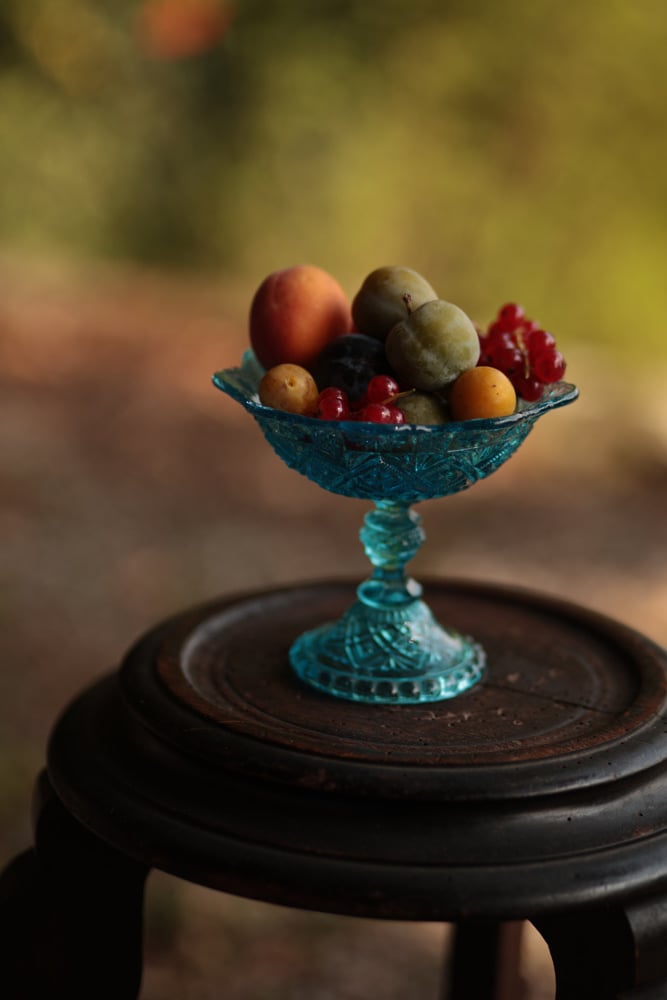 Glasschale, mit Fuss, türkisblau