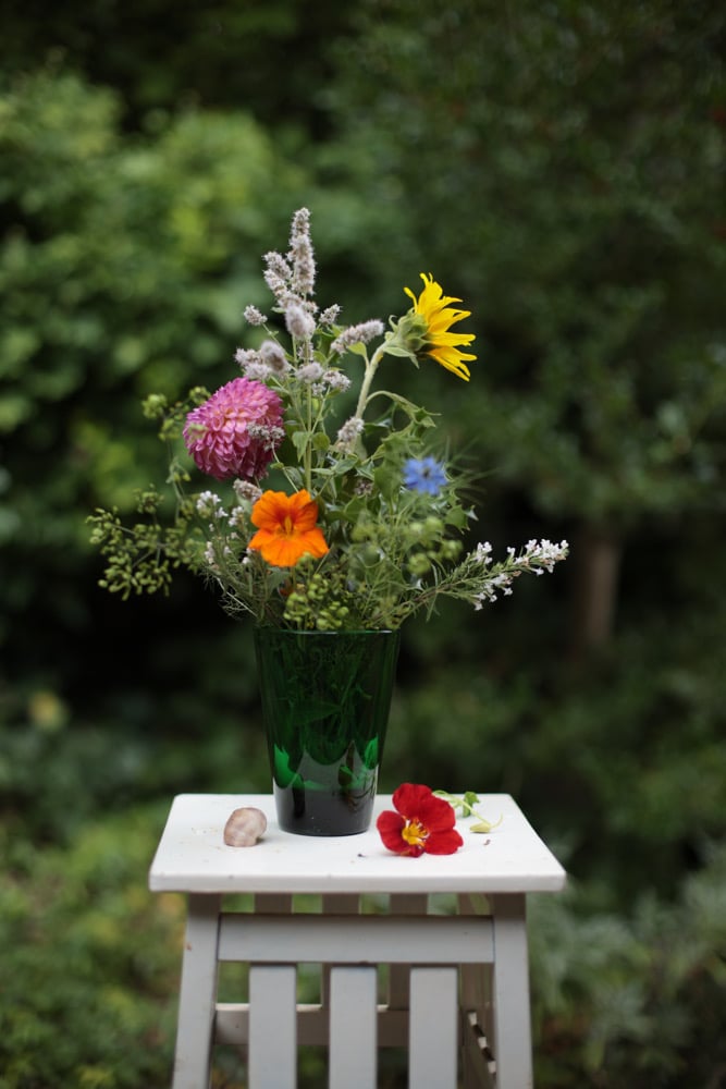 Vase, sehr schweres, grünes Glas, wunderbar schlicht und ohne Fuss