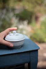 Zuckerdose, weiss, Porzellan mit Flechtmuster
